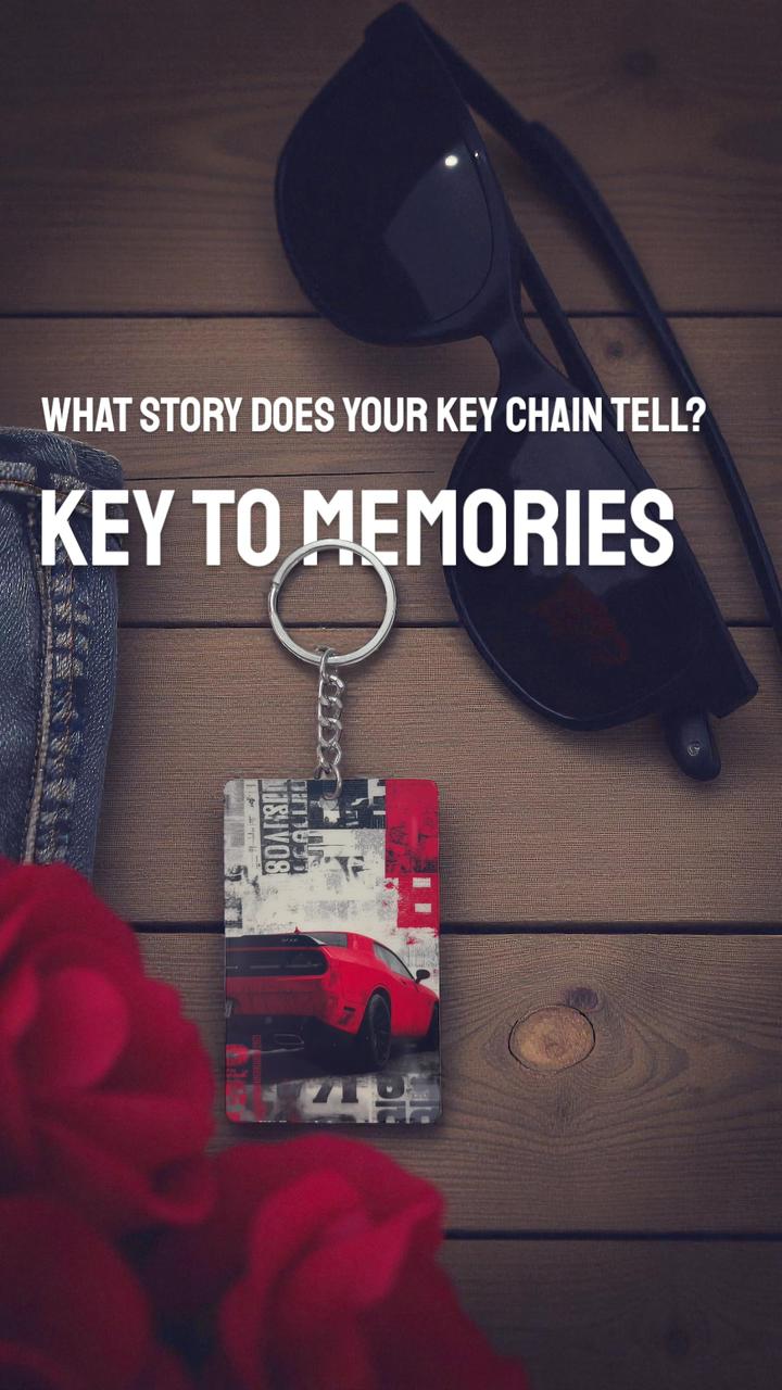 Ignite your passion for performance with this bold red sports car keychain featuring edgy urban street art styling. This premium collectible combines automotive excellence with contemporary design, showcasing a striking red supercar against a gritty newspaper collage backdrop.